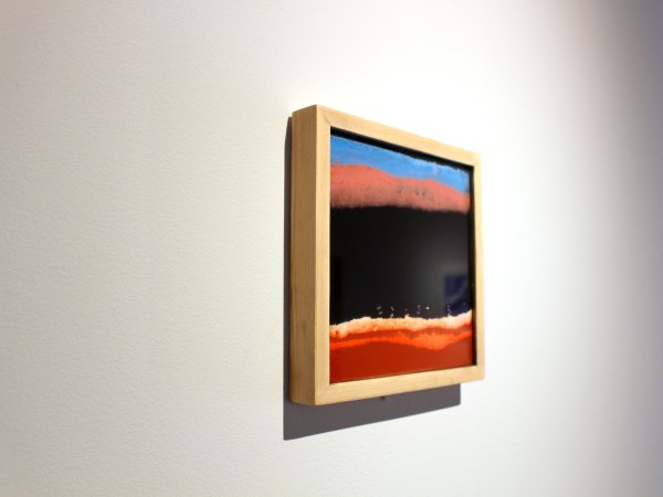 Pigments, cadre en bois, verre. 25 x 25 cm