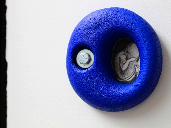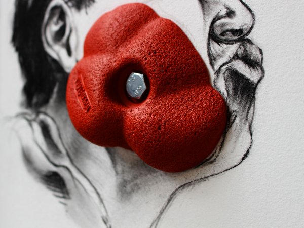 Charcoal, pencil, climbing hold on Ingres paper, mat paint. Variable size