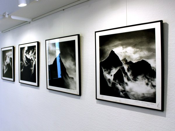 Extraits au Mont Analogue de René Daumal et au poème de Juan Bautista Arriaza, les dessins allégoriques interprètent un pèlerinage physique et mental au sein de l’univers propre à l’alpinisme. Les Bribes de sommets de l’Himalaya, parfois à peine perceptibles sont ici imaginés en clair obscur très tranchés pour en accentuer la posture imposante et onirique.