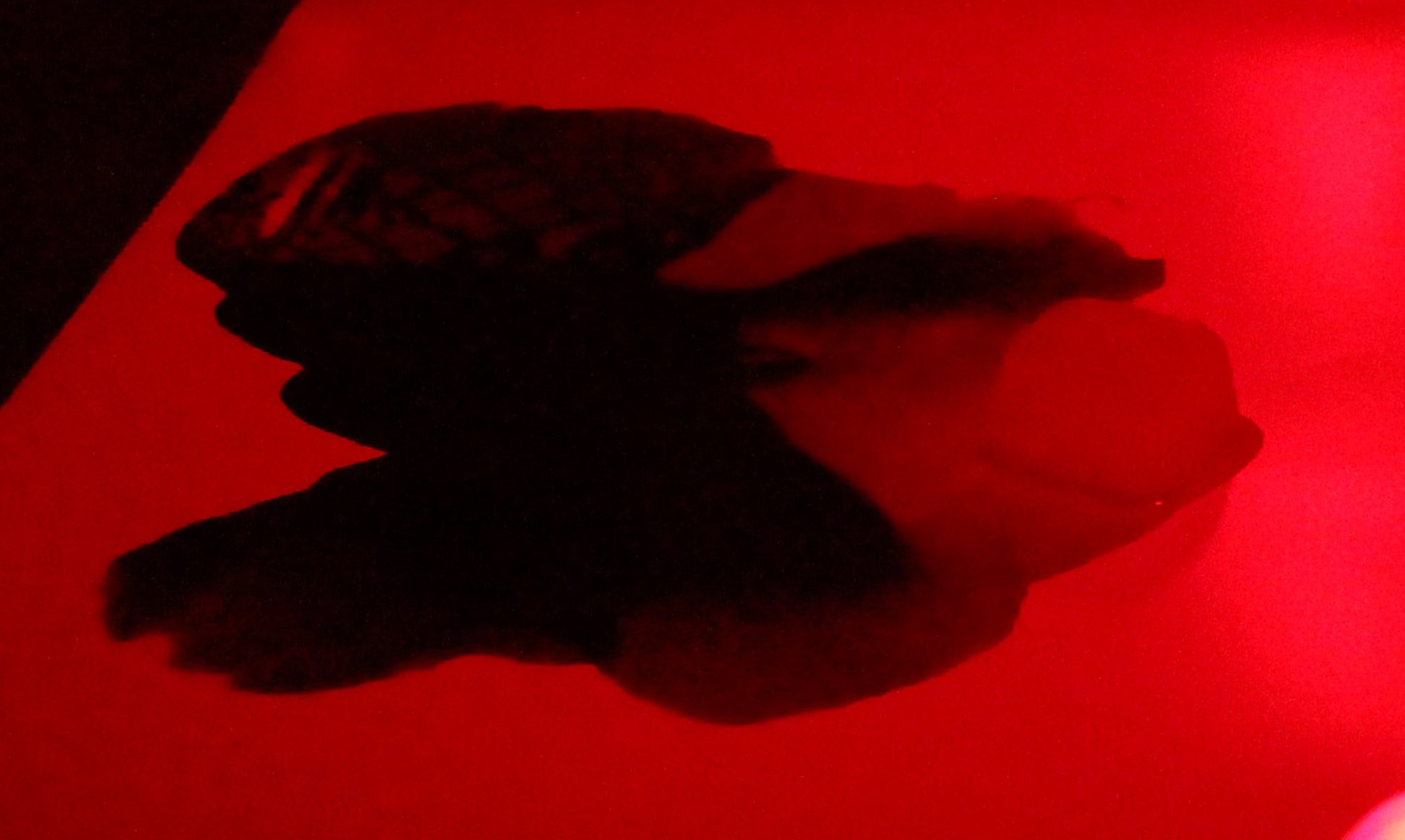 Les glaçons fondent et se meuvent de manière aléatoire sur la surface photosensible faisant apparaître uniquement certaines parties de l’image. Une fois la dissolution complète du glaçon le processus de révélation s’arrête pour que l’image soit ensuite fixée. Le reste de l’image insolée ne sera jamais révélé.