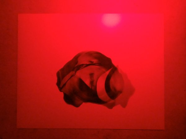 4 : Les glaçons de révélateur sont apposés sur le papier photosensible à un enmplacement précis.