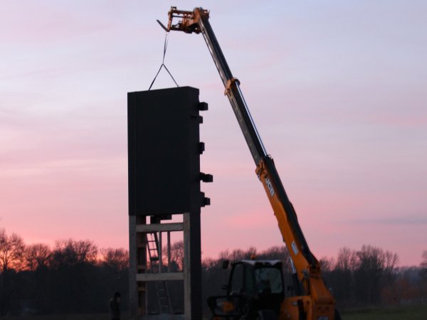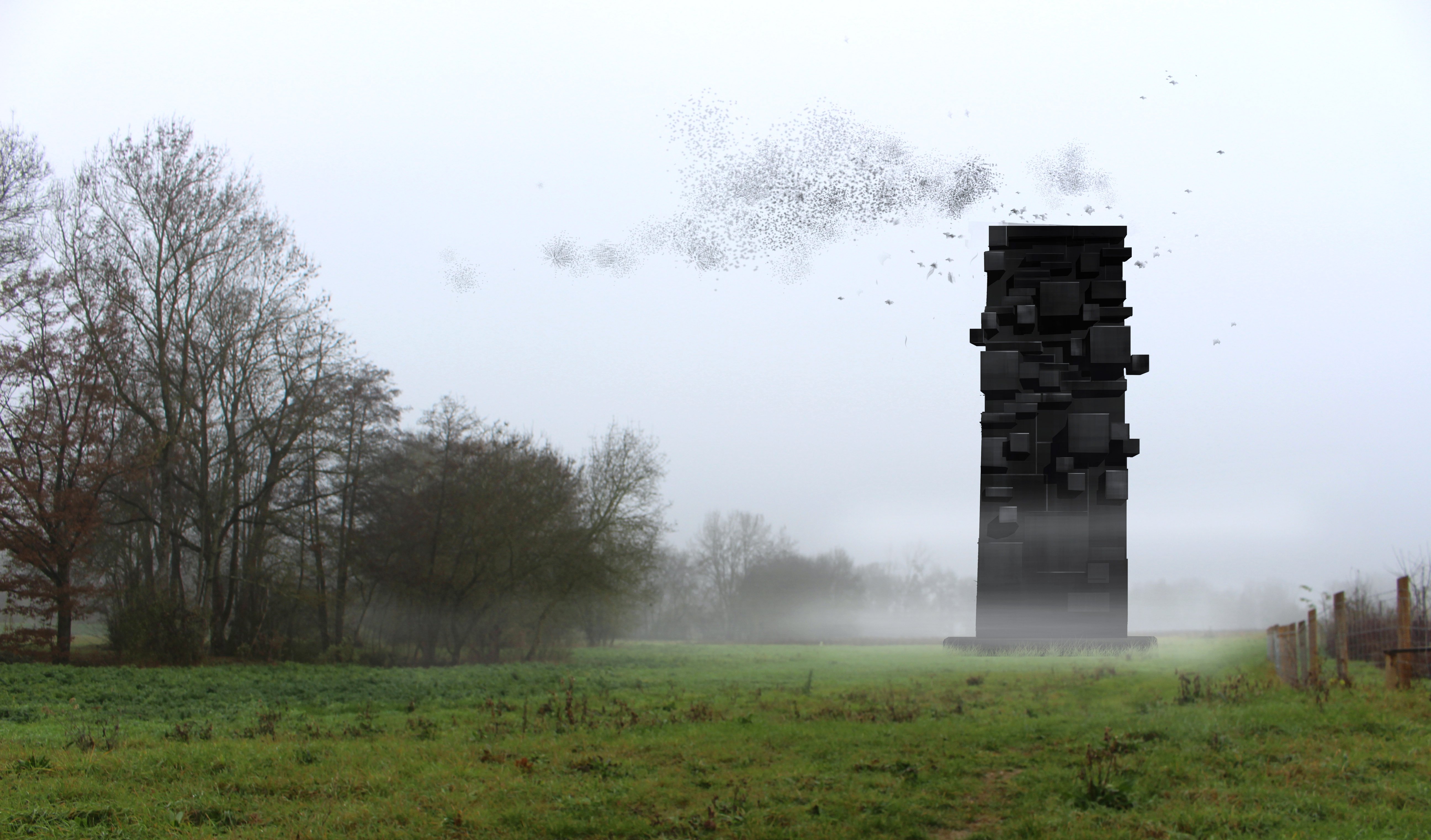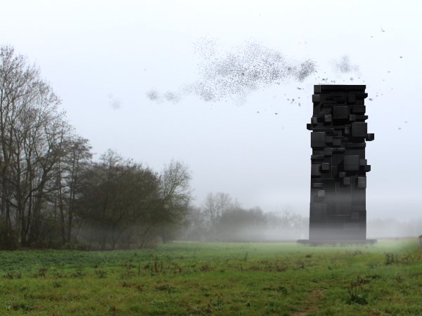 Sculpture d'art contemporain perenne destinée au refuge (Shelter) des colonies de Martinets noirs, hirondelles de fenêtres et chiroptères de l'ENS du Val Choisille (37).