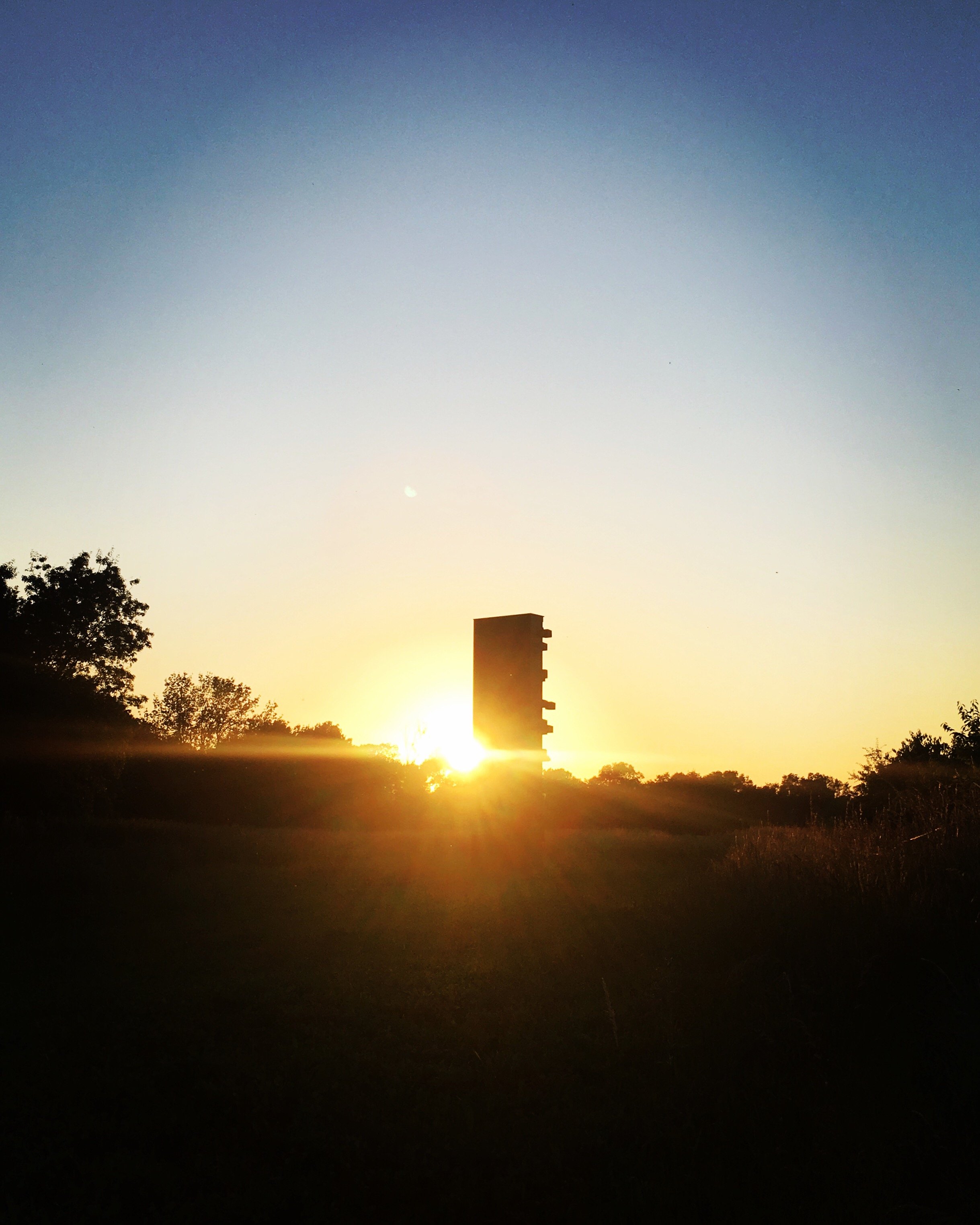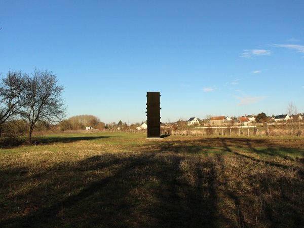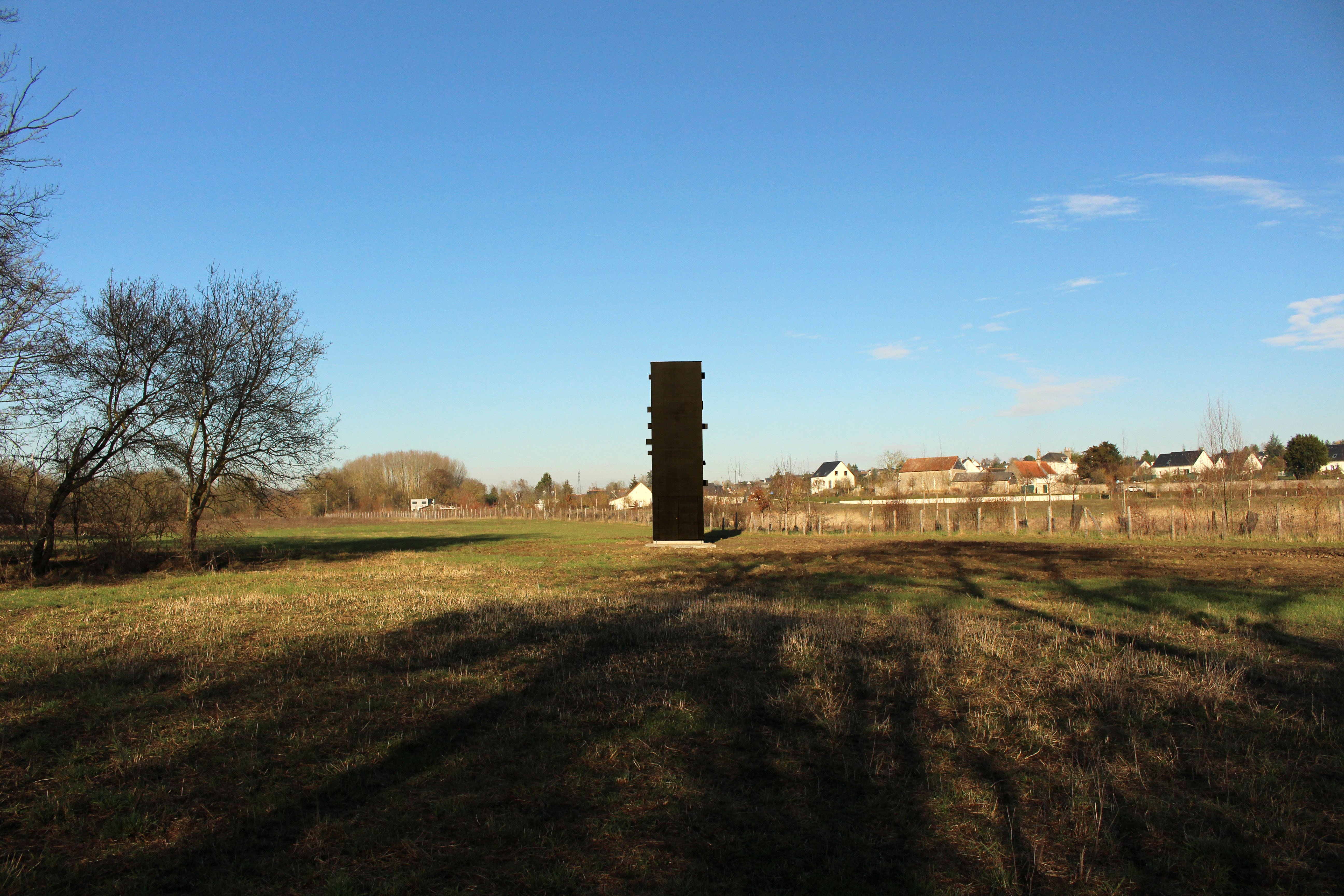 Carbon Shelter relève à la fois d’un impératif écologique (sauvegarde d’un écosystème) et de considérations esthétiques. Il se dresse au cœur du Val Choisille tel une tache aveugle, un obstacle sur lequel vient buter l’œil. Sombre, insondable monolithe évoquant l’aube de l’humanité (Stonehenge, le 2001 de Kubrick), il est comme un jalon rappelant notre empreinte à travers les âges. Notre empreinte sur la nature.