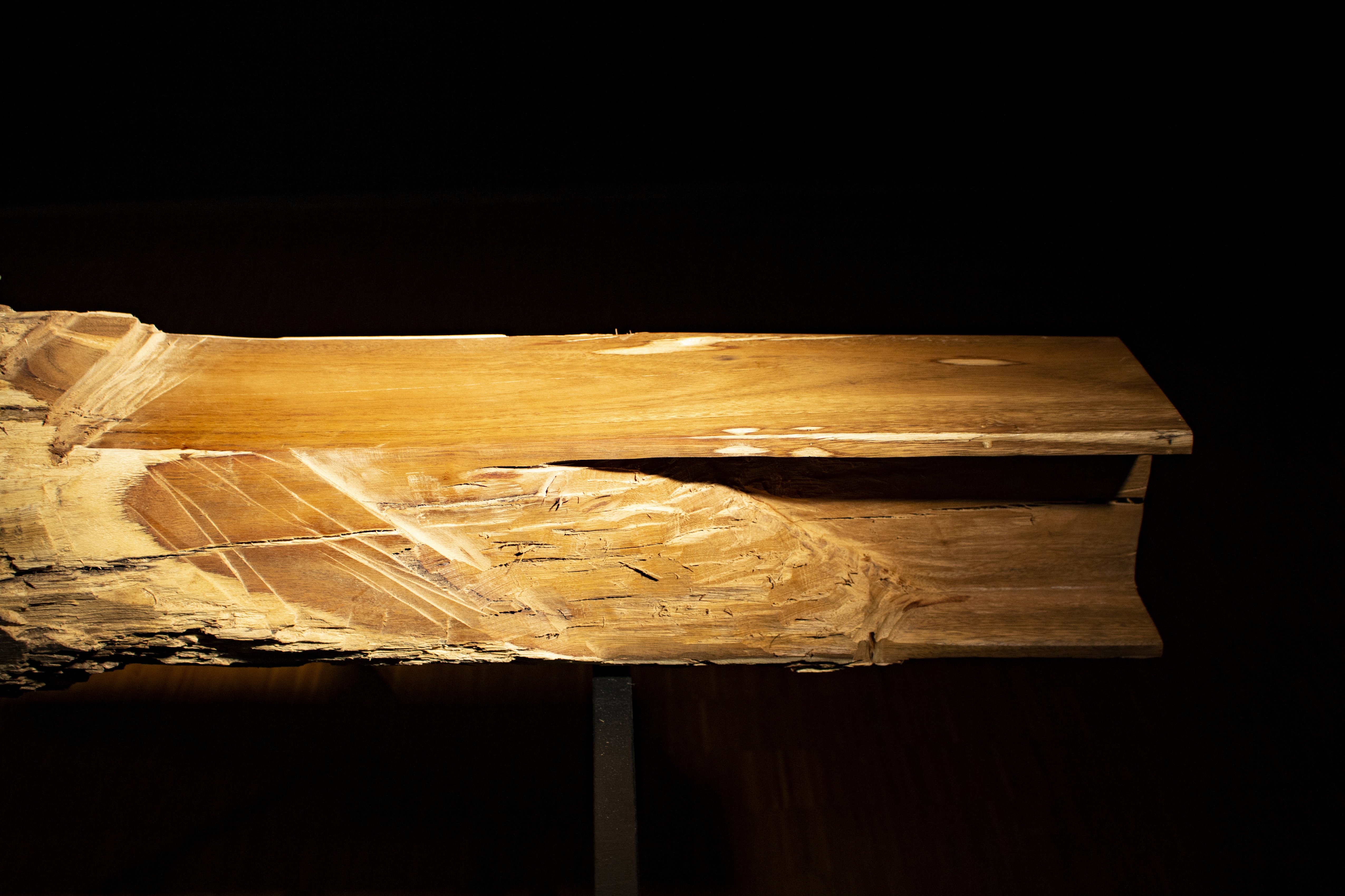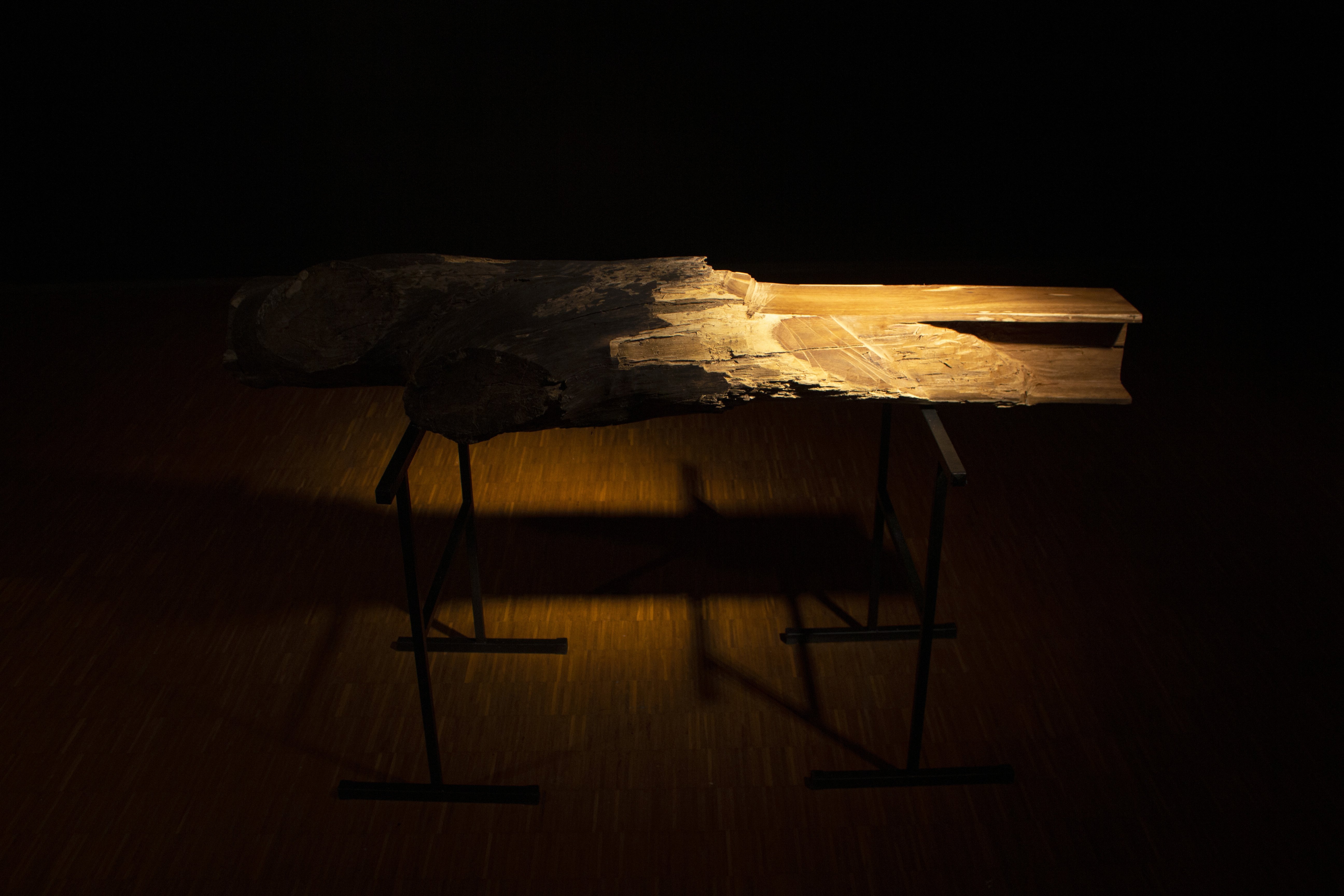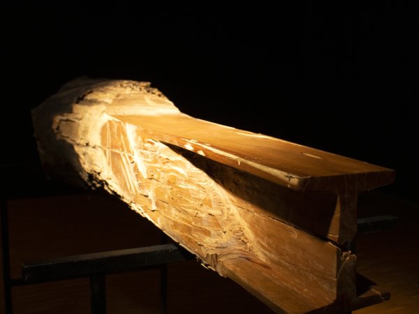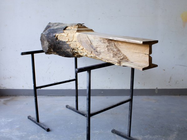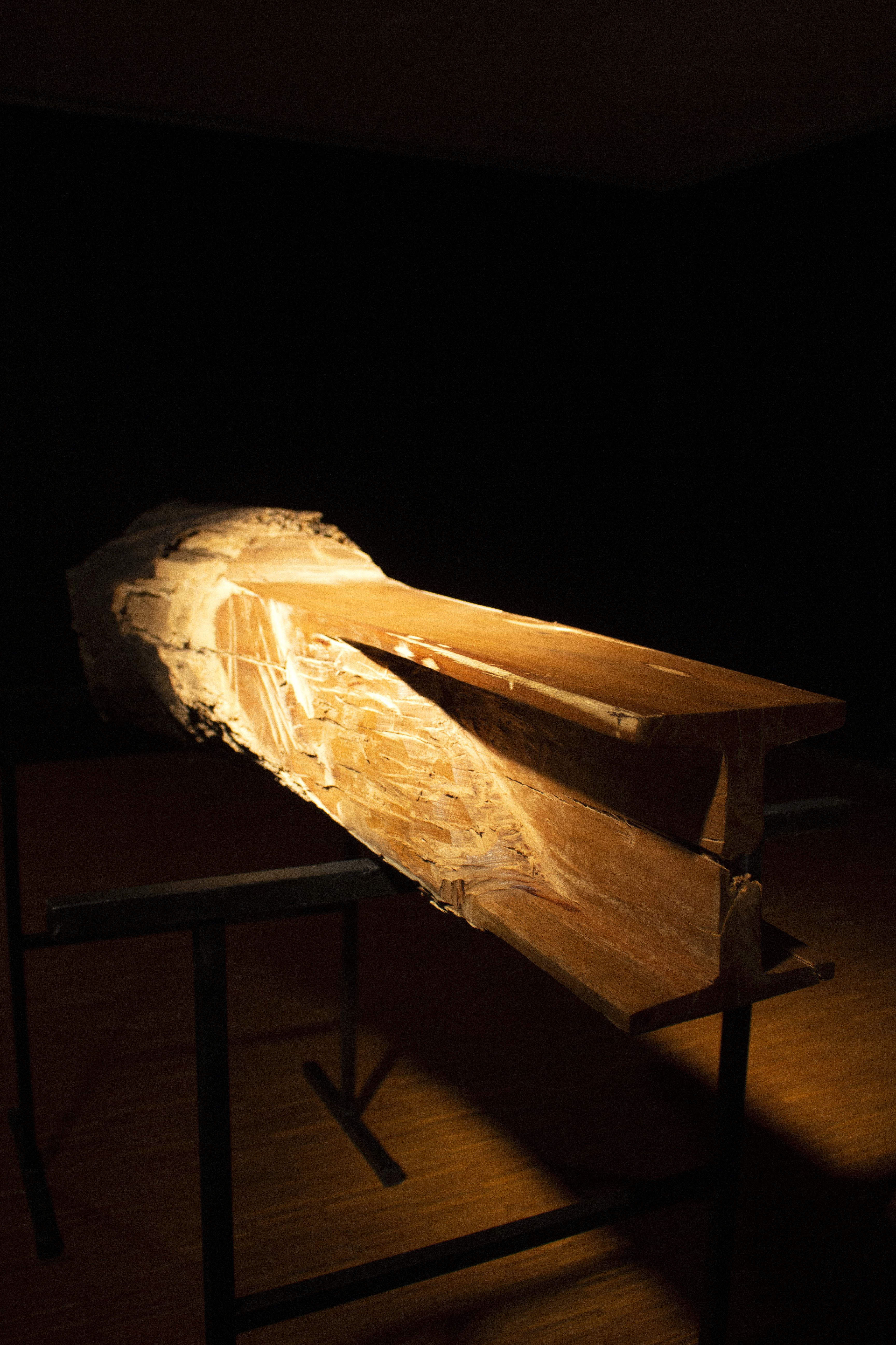 Symbole de l’industrialisation et élément indispensable aux structures architecturales contemporaine, la Poutrelle à profil Normalisé est ici confectionnée dans un tronc d’eucalyptus. Les structures en métal inoxydables ont communément supplanter les traditionnelles poutres en bois dans une dynamique d’efficience. Néanmoins, l’agencement de certaines essences de bois s’avère dans certaines conjonctures plus efficaces que l’acier dans un rapport poid / resistance / flexibilité.