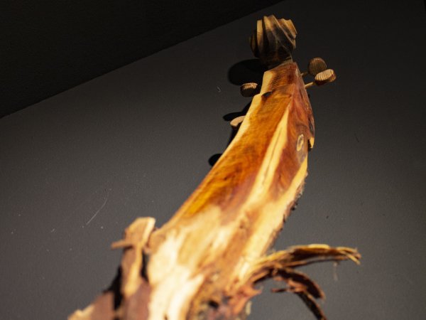 La sculptures anthropomorphiques Devenir art - La tourmentée évoque avec une économie d’indices, différentes humeurs ou états d’esprit. Sculptée discrètement au centre des branches de Gaïac, les positions des mains laissent place à l’onirisme, à l’interprétation et l’imaginaire de chacun pour déterminer l’identité et le tempérament de cette femme.