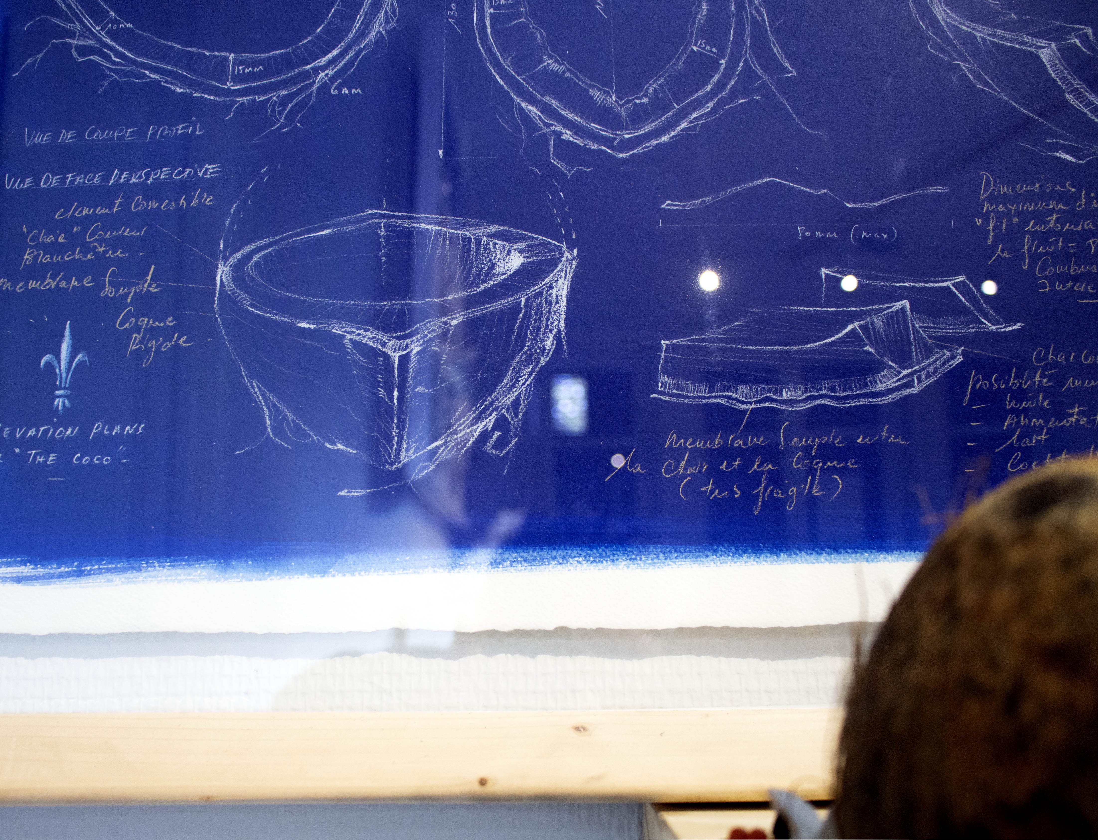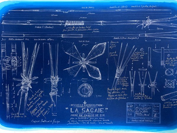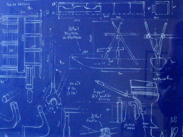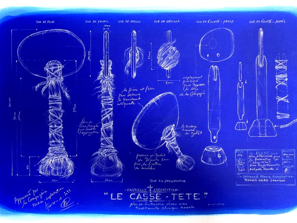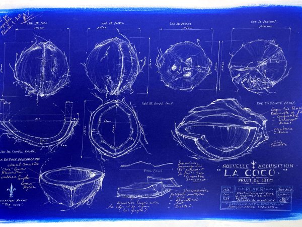 La série France Nouvelle acquisition est un ensemble de 6 dessins qui reprennent les codes des plans navals et des plans d’architecture en diazographie. Derrière l’esthétique ludique du dessin, les plans orthonormés précis permettent à quiconque de réaliser de manière industrielle ces objets. Ils permettent de remédier à une perte de mémoire collective et la perpetuation d'un savoir-faire, mais permettent aussi l’exportation et l’absorption d’une culture traditionnelle à plus grande échelle...