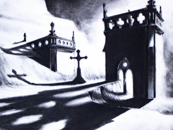 Fusain, pierre noire et rehauts de blanc sur papier Ingres. 40 X 40 cm (chaque)