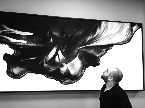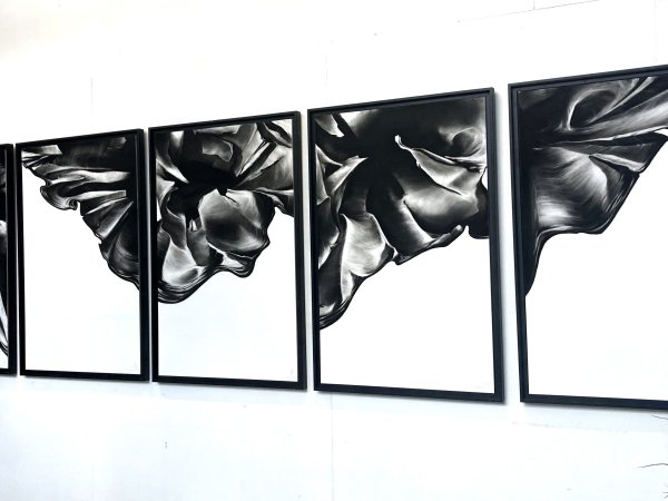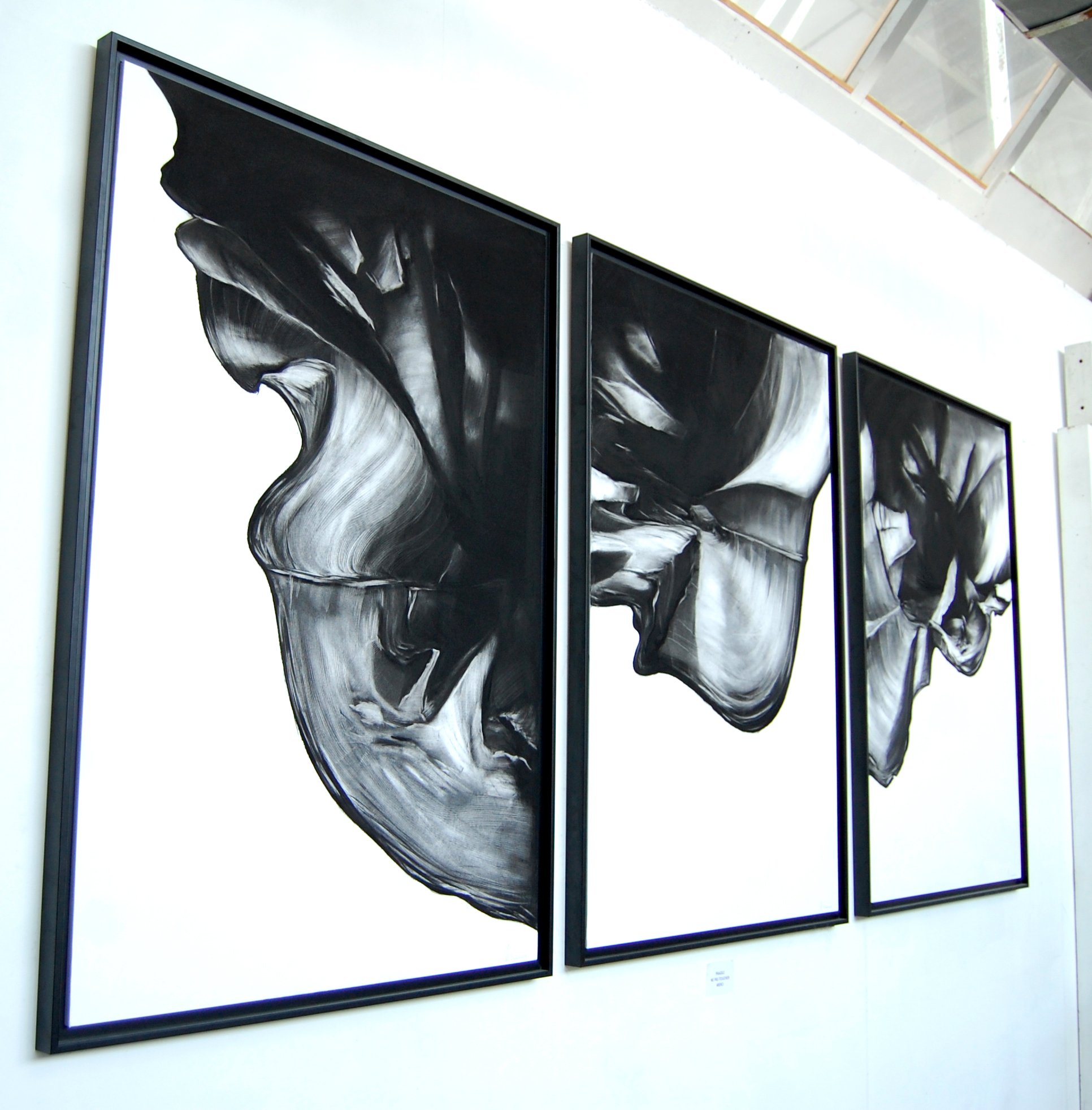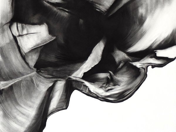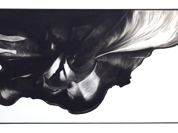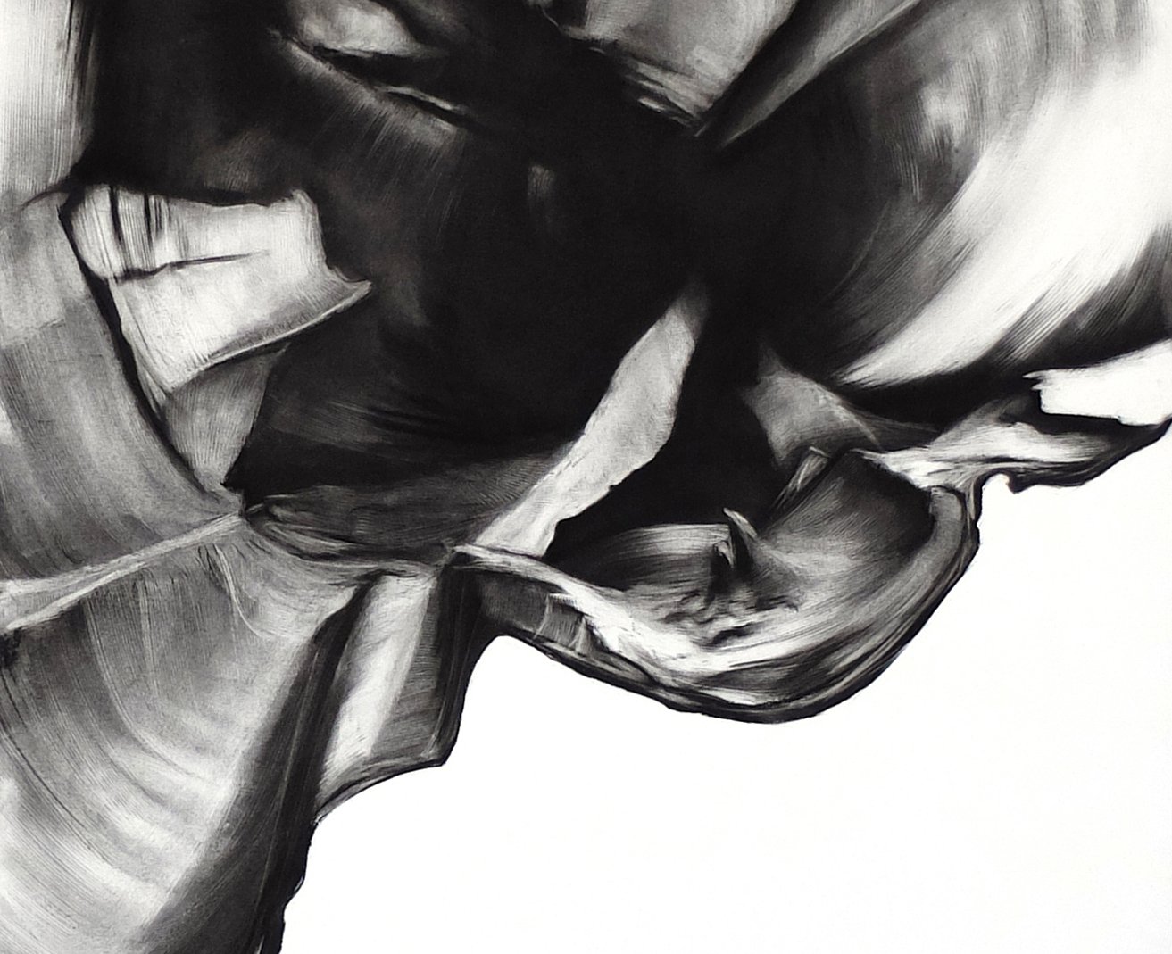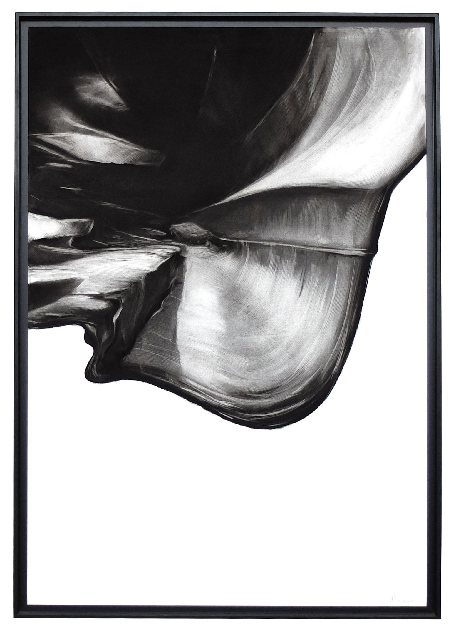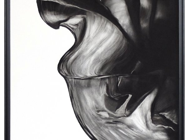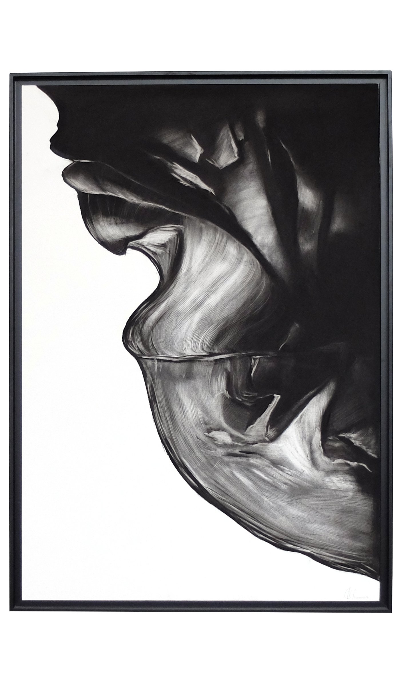 Charcoal, black stone and white highlights on monted paper, black frame. Private collection