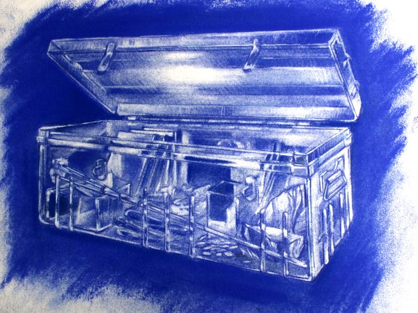 Enfouies dans l'hypocampe, sous un amas d’objets en tout genre se trouve deux cantinières aux couleurs vives. A l’intérieur : des éléments d’une culture lointaine, des photographies d’inconnus sous une végétation luxuriante, des restes de mâchoire de requin…