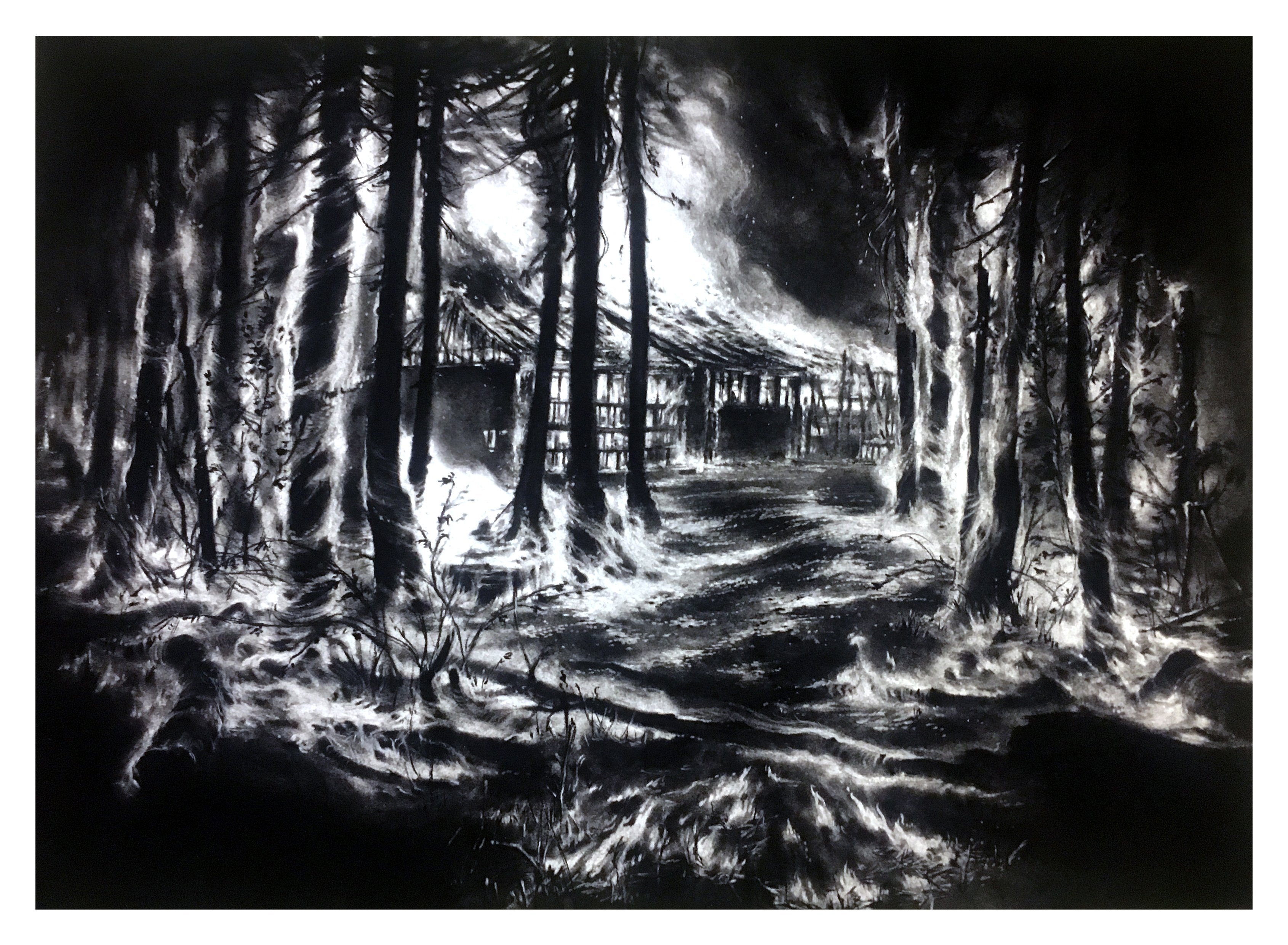 Odysée Calédonienne - L'incendie #2. 60 x 80 cm.