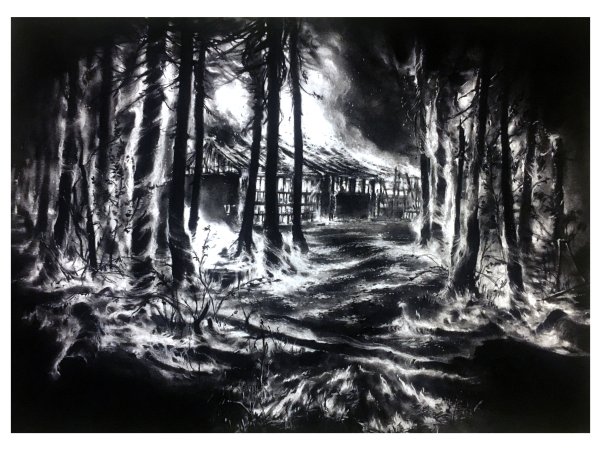 Odysée Calédonienne - L'incendie. 60 x 80 cm. Private