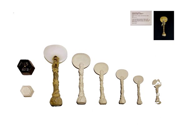 Intrigué par la variabilité du retrait due à la cuisson des porcelaines, mon intention était de vérifier et constater de manière empirique la perte de matière inhérente au procédé. Ainsi la cuisson d’une porcelaine entraine un retrait qui varie entre 10 et 20 % selon les produits et les céramistes.