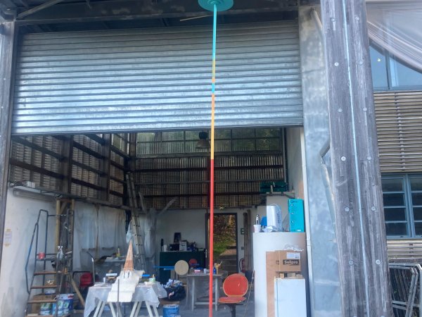 Bois, peinture mat, vernis haut brillant. 490 x 50 x 50 cm. Piece Unique.