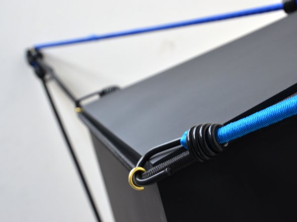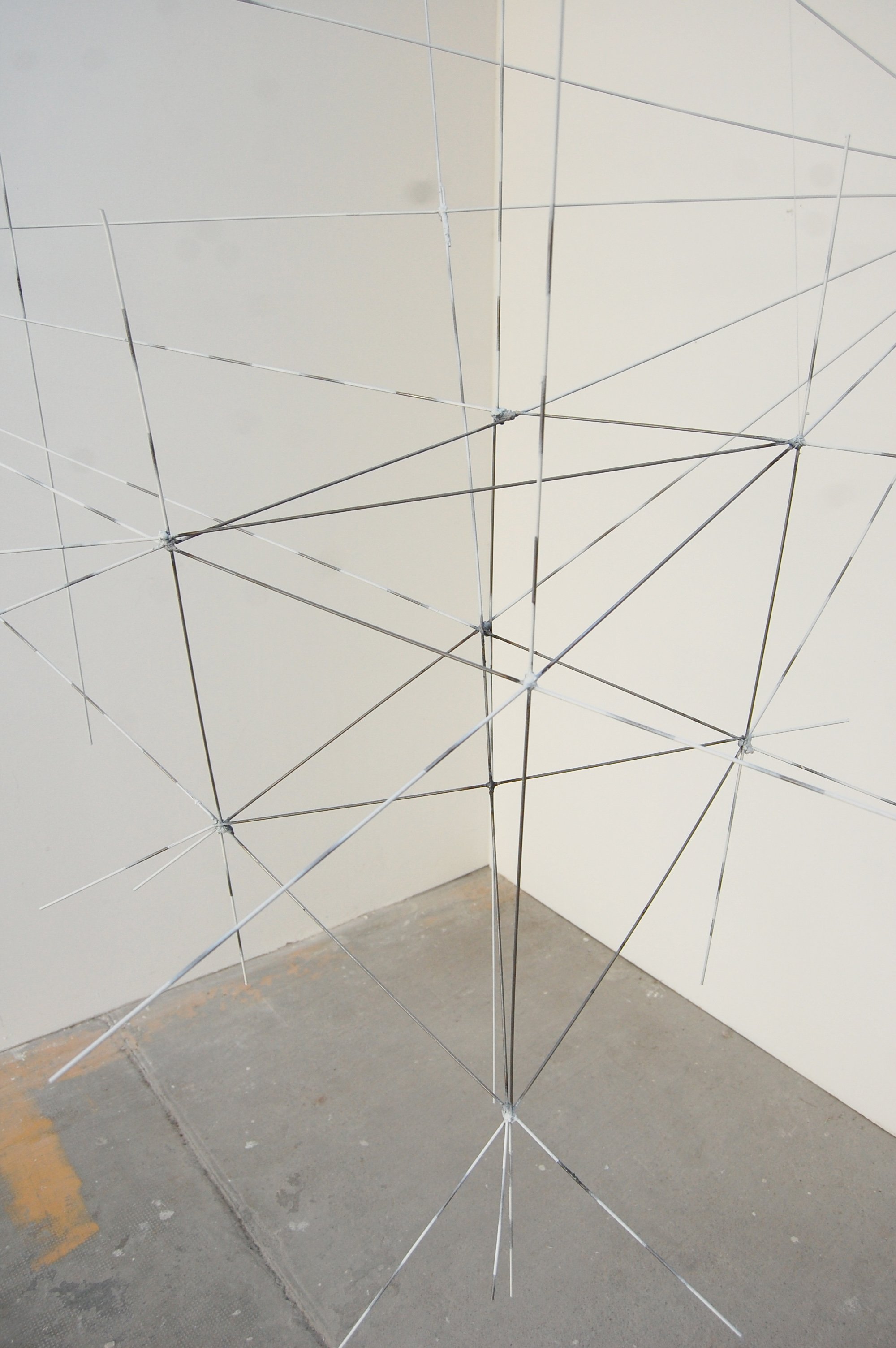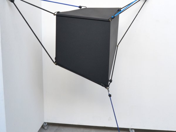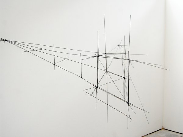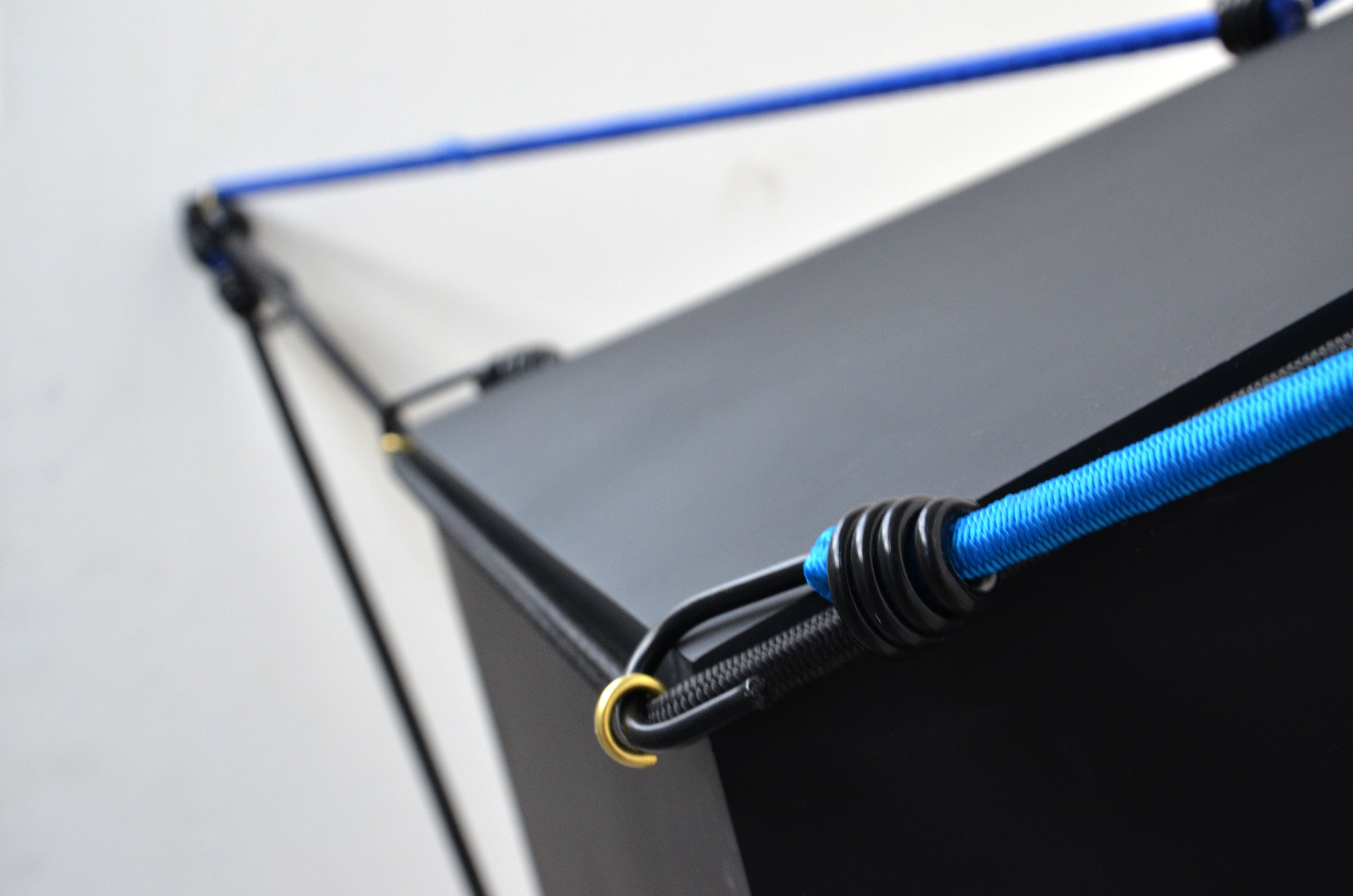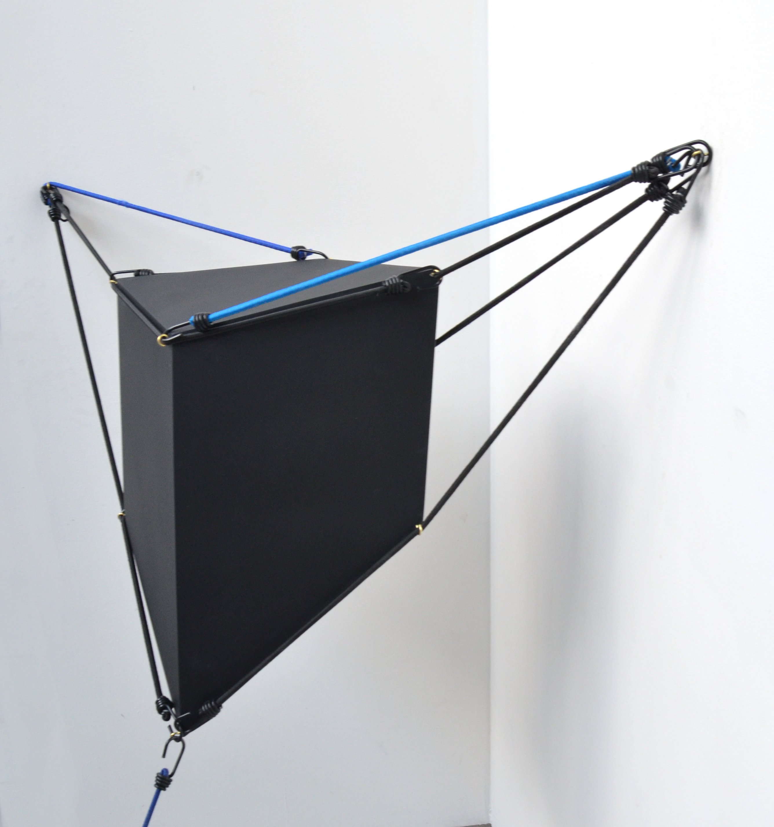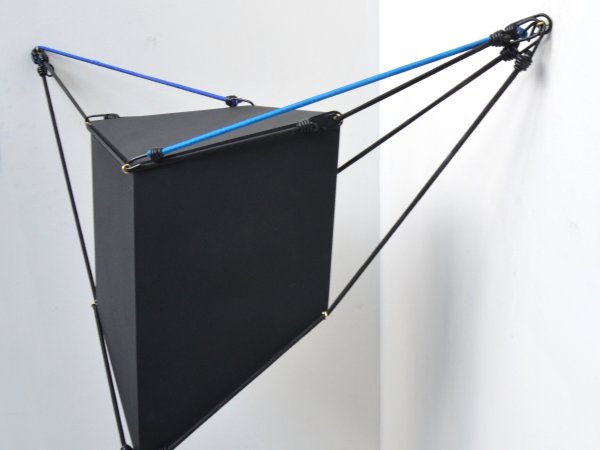 Steal, paint, wood, golden hook, tensioner. Variable size