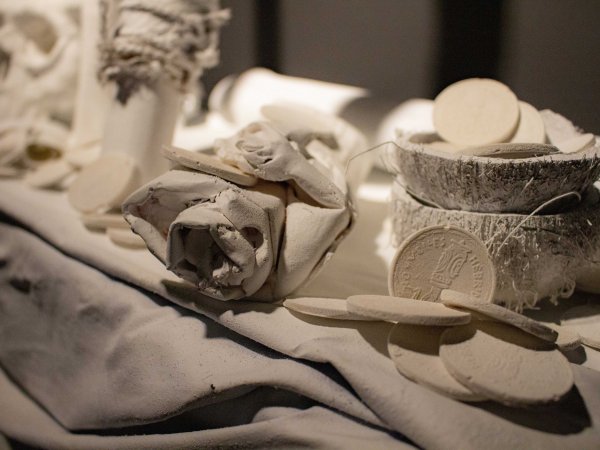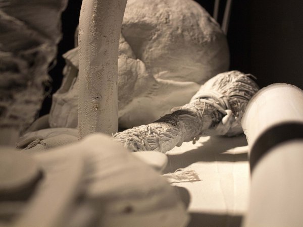 Wood, Manou, coconut, resin, coconut fiber, plaster, mineral clay, mat white paint. 220 x 80 x 35 cm. Unique piece.