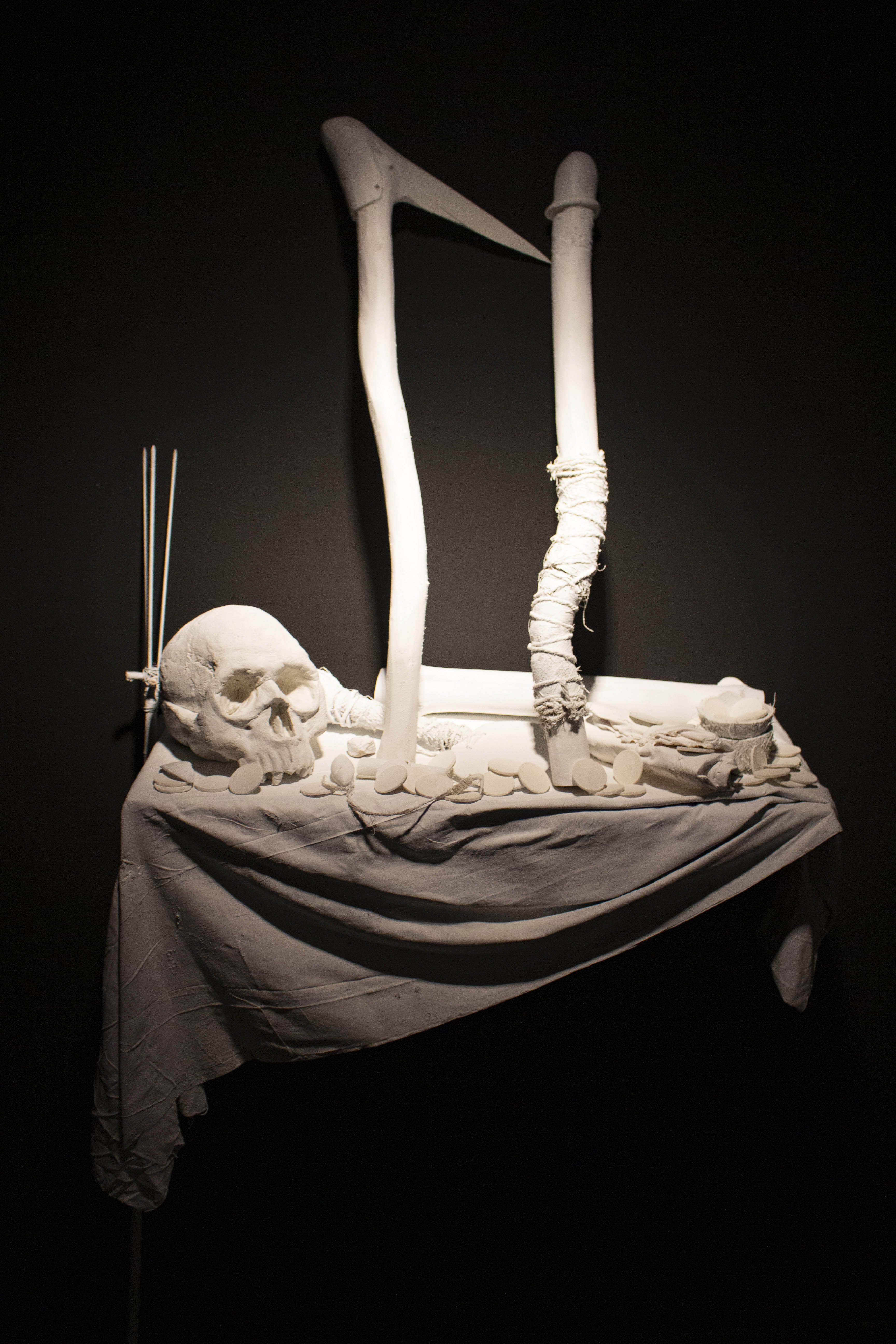 Cette sculpture vise à réhabiliter les origines et cultures Océaniennes et Mélanésiennes toujours méconnues et longtemps mis au banc dans le champ de l’Histoire de l’Art et spécifiquement celui des vanités.