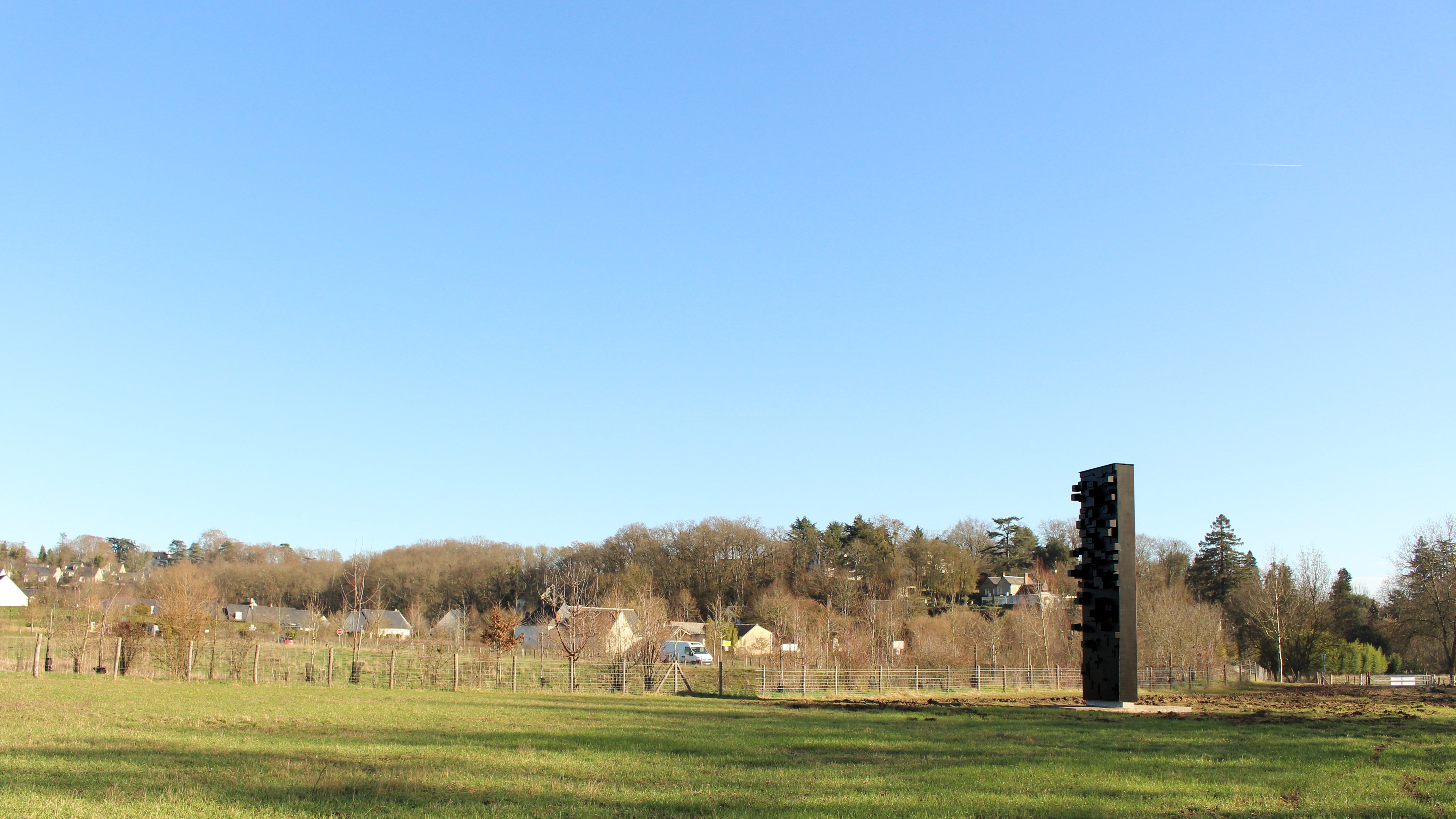Carbon Shelter relève à la fois d’un impératif écologique (sauvegarde d’un écosystème) et de considérations esthétiques. Il se dresse au cœur du Val Choisille tel une tache aveugle, un obstacle sur lequel vient buter l’œil. Sombre, insondable monolithe évoquant l’aube de l’humanité (Stonehenge, 2001 l’Odysée de l’espace de Stanley Kubrick), il est comme un jalon rappelant notre empreinte à travers les ages. Notre empreinte sur la nature.