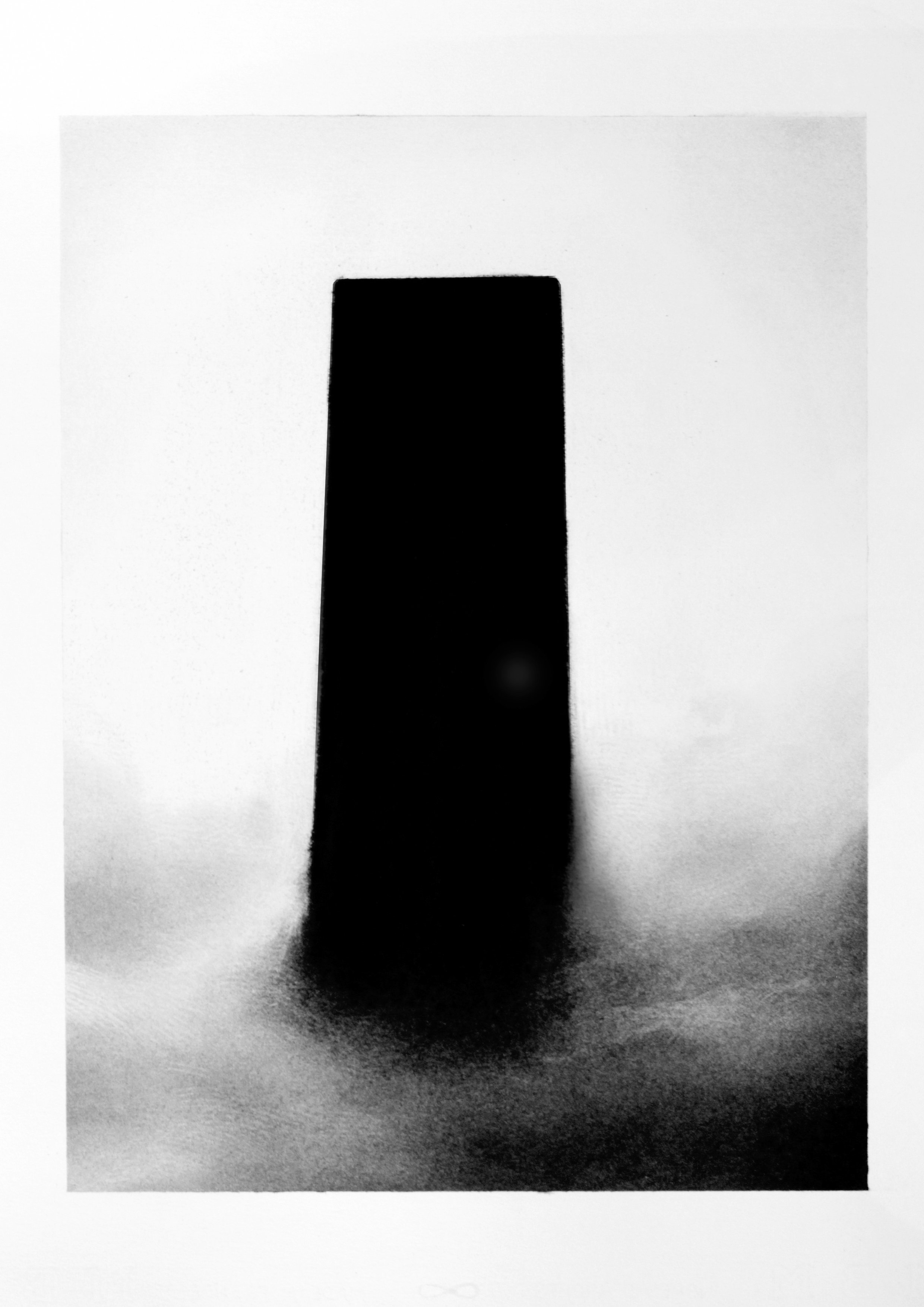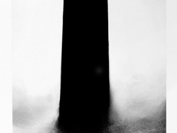 On dirait un énorme bloc de charbon (le fusain si cher à l’artiste), l’allégorie d’un temps inéluctable menant de la première flamme aux cheminées noires de suie, aux micro-processeurs de nos ordinateurs. Noir comme l’avenir de la planète ? Ou comme la nuit des origines ? Le feu semble s’être éteint sans nous apporter de lumière. Est-ce donc dans l’obscurité à travers laquelle nous ne savons plus voir, ou derrière l’horizon des événements qu’il faut chercher un abri ? C’est que l’obstacle se veut aussi refuge. A le regarder de plus près, l’édifice – qu’on dirait d’un seul bloc - est en réalité constitué d’une maille plus élémentaire qui paraît s’assembler sous nos yeux, sous l’effet de la vie qui s’en empare, qui l’anime, qui y aspire, qui résiste dans l’ombre, et ce que l’on prenait pour départ ou fin semble davantage une étape.
