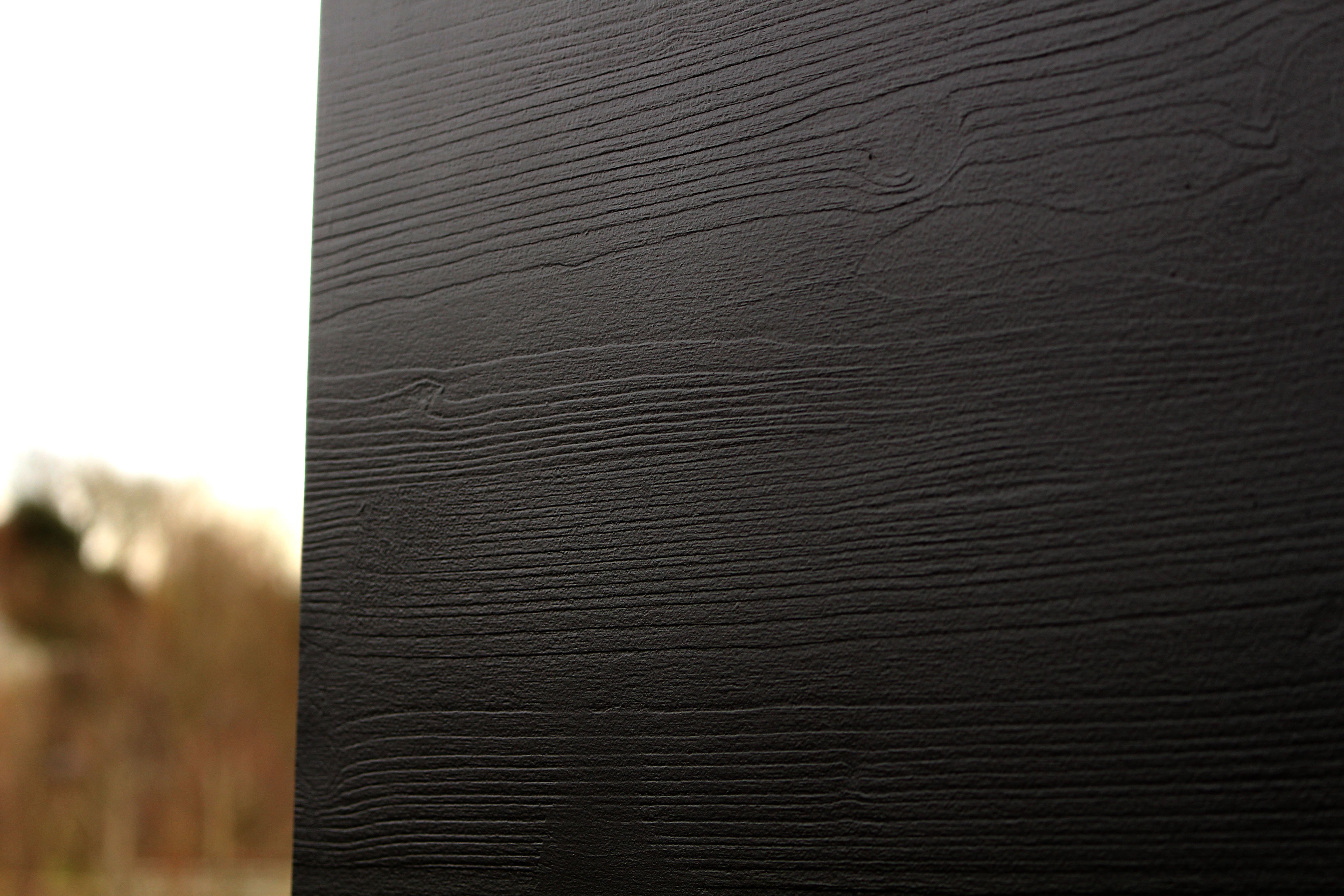Épicéa, béton, acier, verre, laine de roche, verre, saturateur noir mat, peinture laquée noire matte. 820 x 230 x 70 cm.