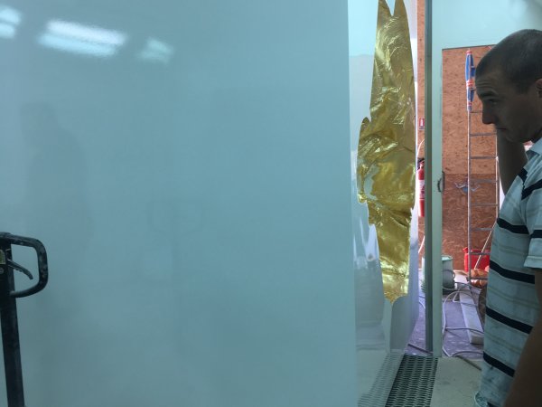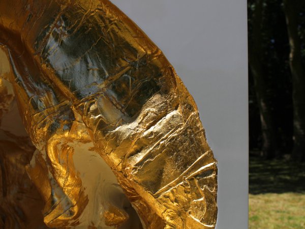 Resin, steel, glossy paint, high glossy varnish, gilding, 22k gold leaf. 90 x 90 x 90 inches. Unique piece